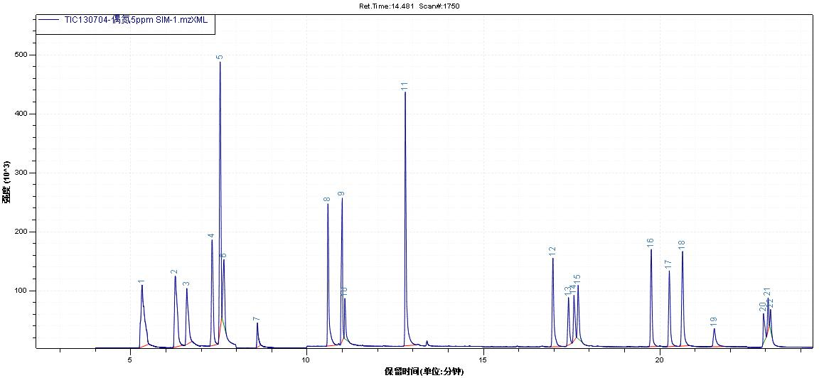 樣品在檸檬酸鹽緩沖溶液介質(zhì)中,用連二亞硫酸鈉還原分解以產(chǎn)生可能存在的致癌芳香胺,用專用顧鑫萃取小柱提取溶液中的芳香胺,濃縮,定容,用GC-MS氣質(zhì)聯(lián)用儀進(jìn)行測定。以目標(biāo)物的保留時間和標(biāo)準(zhǔn)質(zhì)譜圖定性,外標(biāo)法定量。