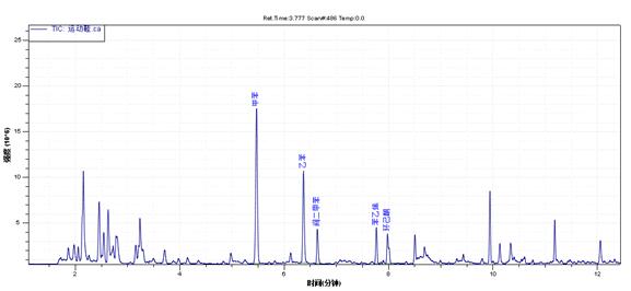 圖3. 某品牌運(yùn)動(dòng)鞋測試總離子流色譜圖
