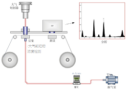 儀器以恒定的工況流量將空氣吸入顆粒物切割器中,以PM2.5為例,動力學(xué)直徑在2.5um附近及以下的顆粒污染物進入到儀器的富集系統(tǒng)中。經(jīng)過一段時間的富集后,富集系統(tǒng)自動切換成β射線分析系統(tǒng),利用β射線的衰減與顆粒物的質(zhì)量濃度成指數(shù)的關(guān)系,對顆粒物的質(zhì)量濃度進行分析。然后卷膜系統(tǒng)地將富集有空氣顆粒物的濾紙移動到X射線熒光分析系統(tǒng),分別利用X射線熒光的能量和強度對顆粒物中的元素成分進行定性和定量的分析。