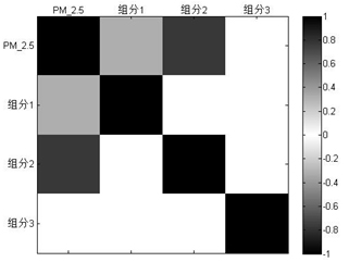 為了進一步研究PM2.5與大氣重金屬之間的關(guān)聯(lián),并為PM2.5的控制提供方向,我們通過已經(jīng)劃分的三個組分與大氣PM2.5濃度進行相關(guān)性分析。結(jié)果如圖5,發(fā)現(xiàn)該地區(qū)主要影響PM2.5的污染源為組分2(冶金工業(yè)廢氣)。