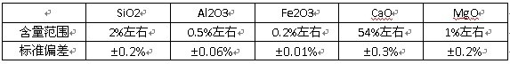 陽極靶材料:Rh;管壓:45kV;管流:3.5mA;定量分析方法:經(jīng)驗系數(shù)法