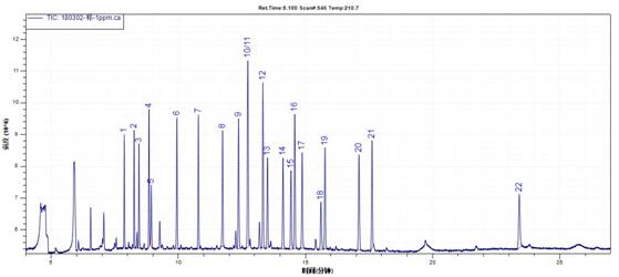 測定方式:TIC(FULL SCAN)定性(掃描范圍:45-450amu),SIM模式定量。